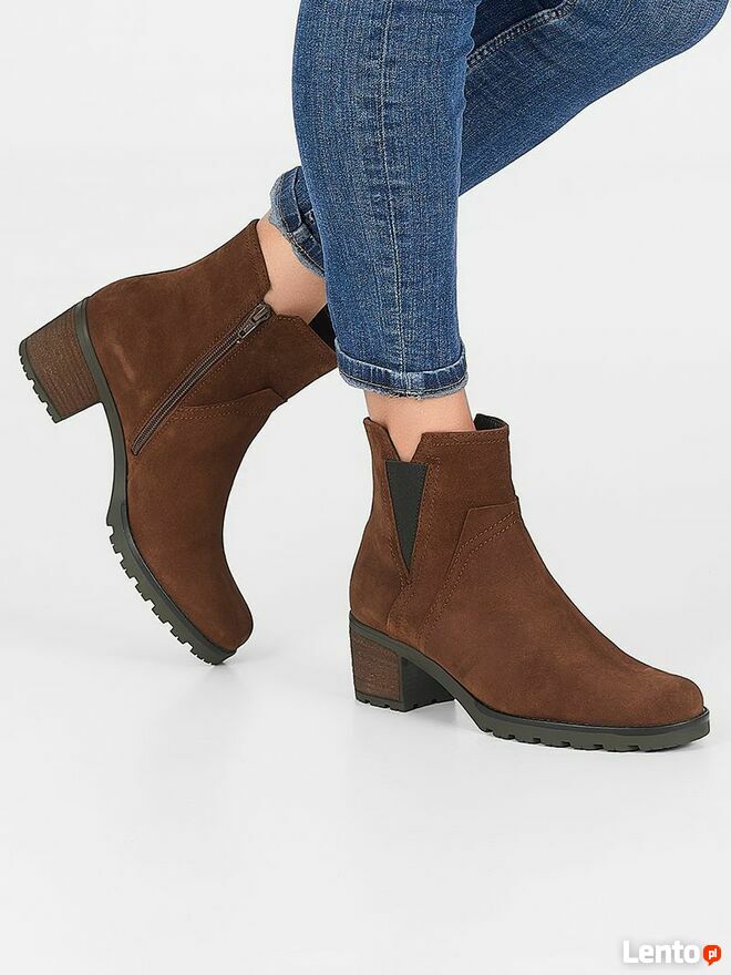 38 GABOR buty damskie botki brązowe zamsz na traperze obcas