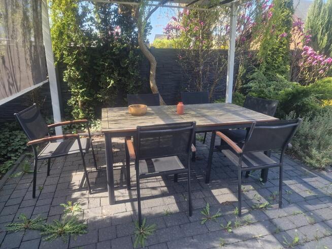 Promocja 3600 / 2900 zł 1 komplet w tej cenie Drewniany komplet mebli ogrodowych w kolorze dąb bielony wykonany na ...